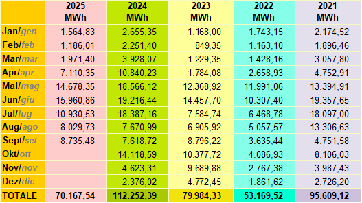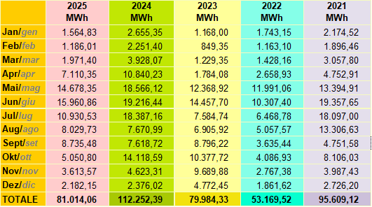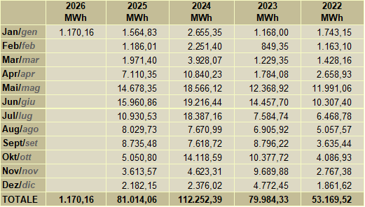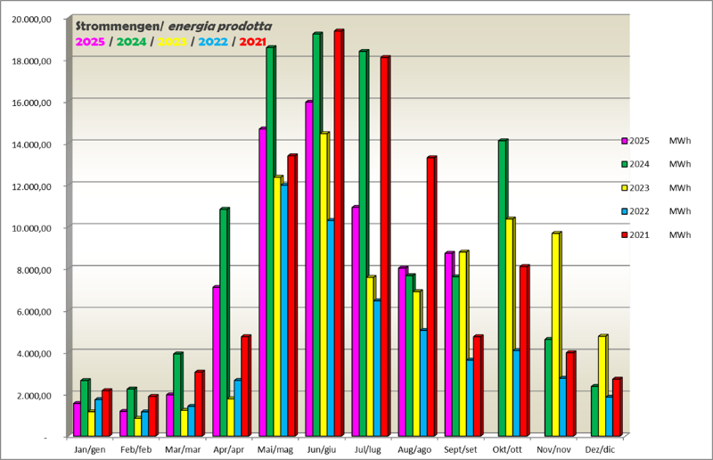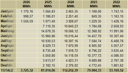Das Kraftwerk der Enerpass ist ein reines Laufkraftwerk ohne jede Form des Rückstaues und damit abhängig von den jahreszeitlichen Niederschlägen. Das Passeiertal gehört zu den niederschlagsreichsten Gebieten in Südtirol mit einem Durchschnittsniederschlag über 1.000 mm pro Jahr. Unser Rückhaltespeicher ist der Schnee im Winter und die Gletscher im Sommer, welche gegenüber dem Ausdehnungsmaximum um 1850 stark zurückgegangen sind. Die Gewitter im Sommer schaffen einen kurzzeitigen Produktionszuwachs, aber nur längere Regenperioden haben längerfristige positive Nachwirkungen.
